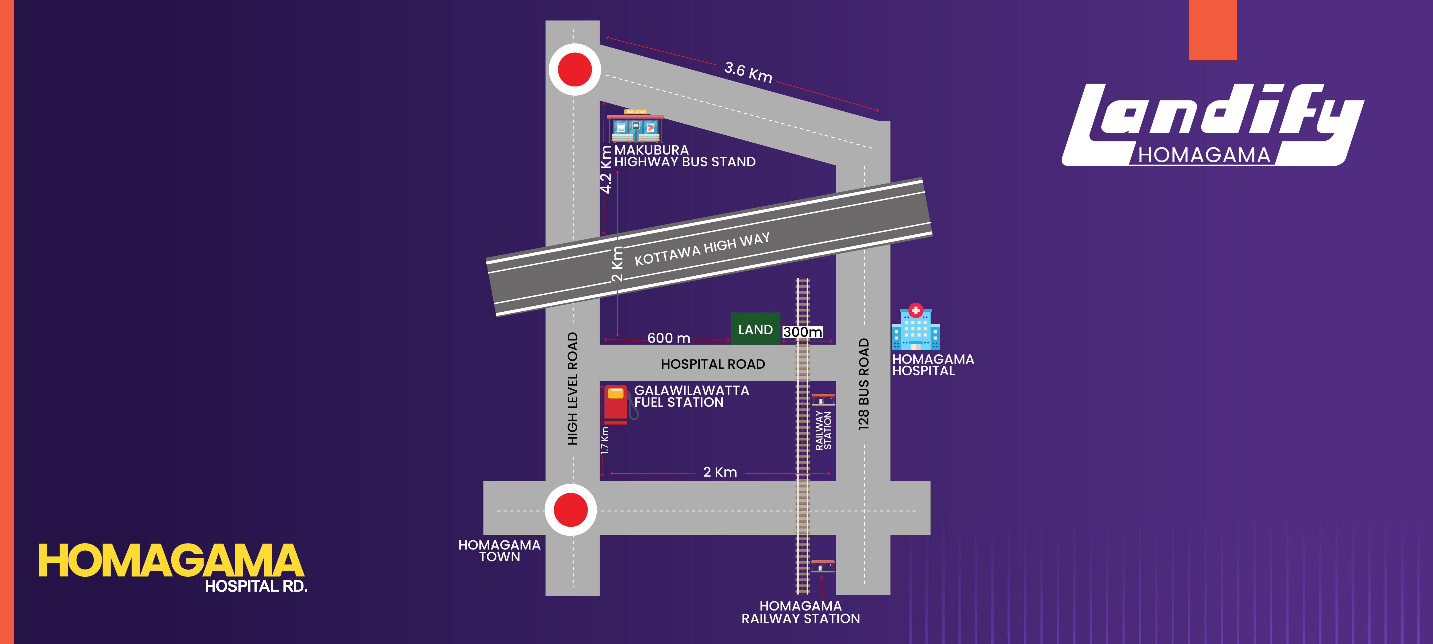 Discover a valuable opportunity to invest in LANDIFY - Homagama, a strategically located development just steps away from the Homagama Base Hospital. Set in a peaceful and established neighborhood, these land plots provide the perfect setting for those looking to build a home in a convenient and accessible location. With excellent connectivity to Homagama town, key transport routes, and essential amenities, the project offers urban access and a serene residential environment.