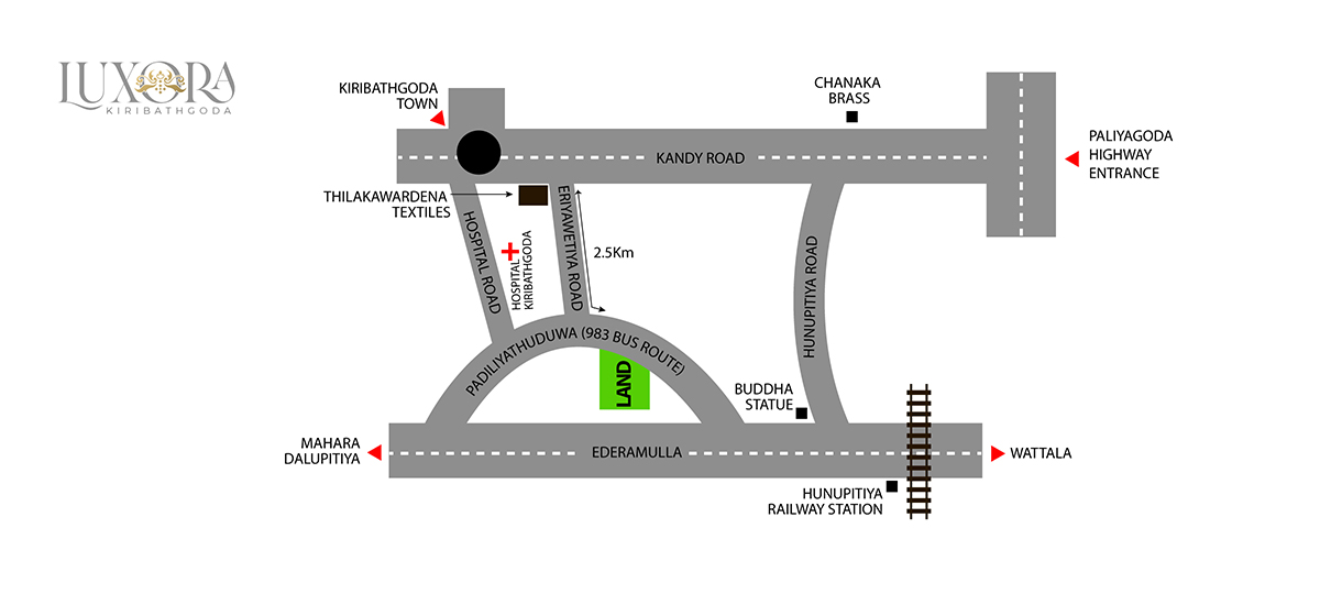 කිරිබත්ගොඩ ඉරියවැටිය පාරට ආසන්නව පිහිටා ඇති මෙම ව්යාපෘතිය , ඔබේ සිහින නිවහන ගොඩනඟා ගැනීමටත් ආරක්ෂිත හා බුද්ධිමත් ආයෝජනයක් කිරීමටත් ඉතා සුදුසුයි. කිරිබත්ගොඩ, වත්තල ප්රධාන නගරවලට සහ මාර්ග කිහිපයකටම පහසු ගමනාගමයක් සහිත LUXORA – KIRIBATHGODA, වේගයෙන් සංවර්ධනය වන ප්රදේශයක පිහිටා ඇති අතර සුවපහසු ජීවිතයක් ඔබට අත්විඳිය හැක.